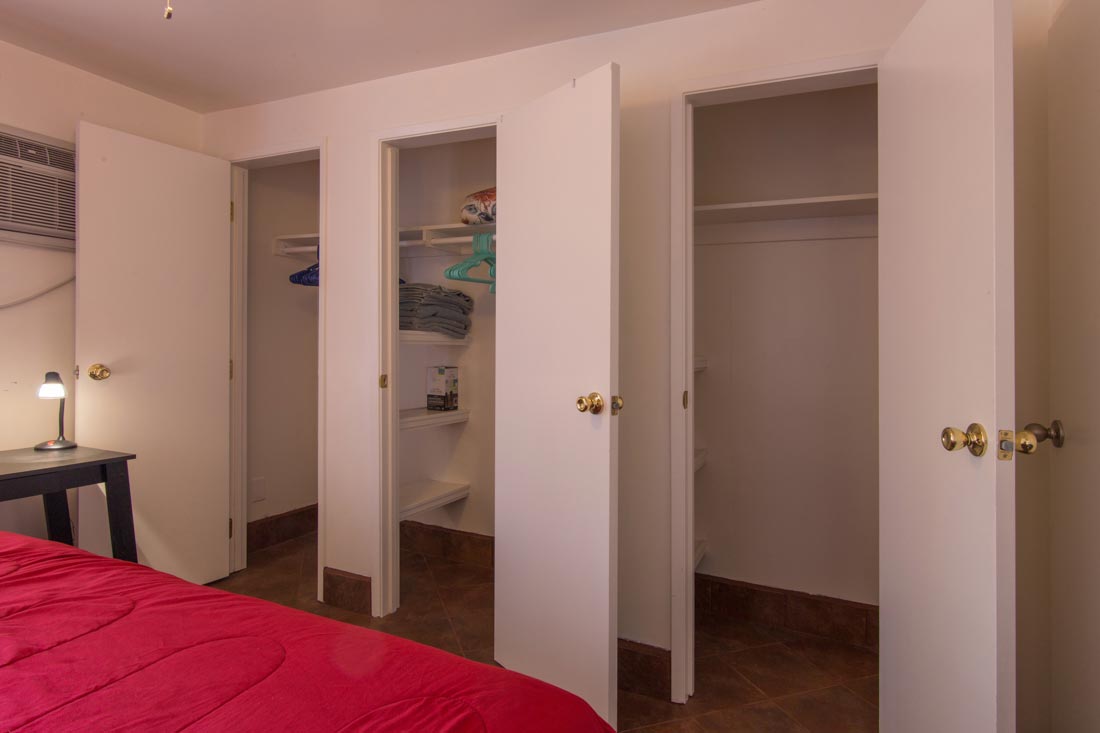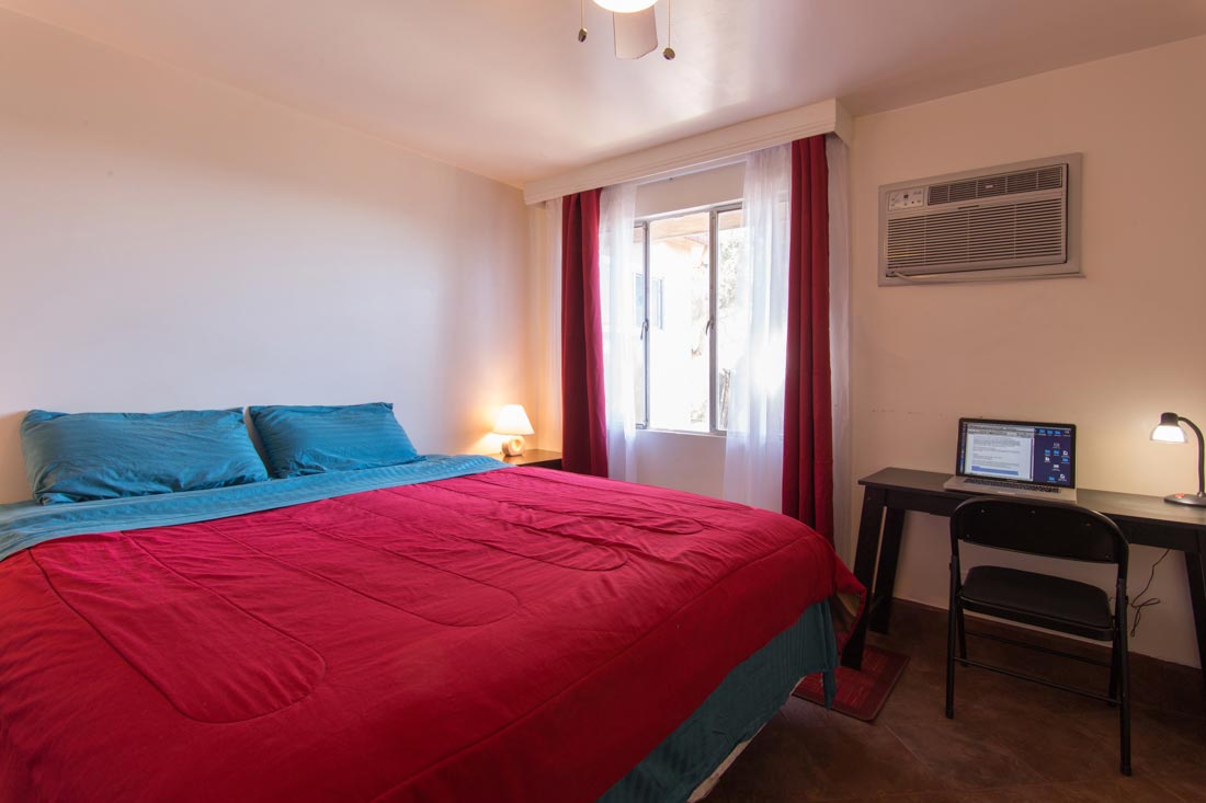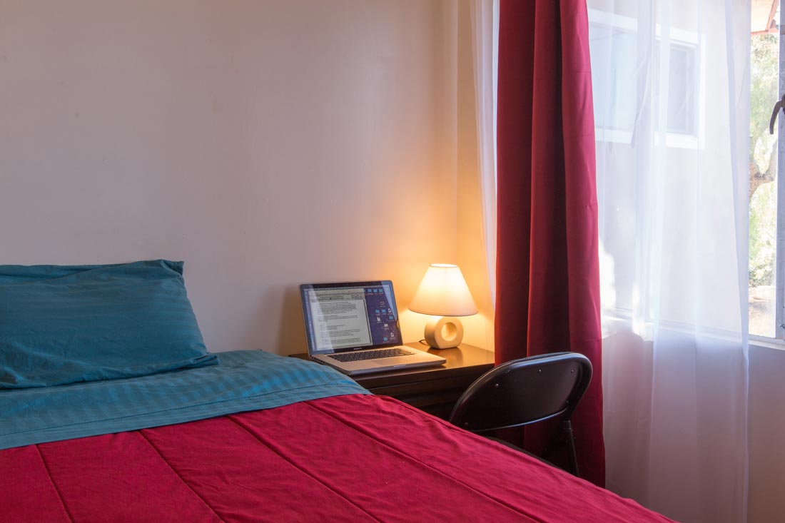 The bedrooms are in a spacious 1200+ sq. ft. house that we call “The Gillespie House.” The house features large shared spaces like a full kitchen, spacious living room, dining room and patio area with a view.